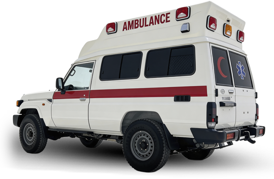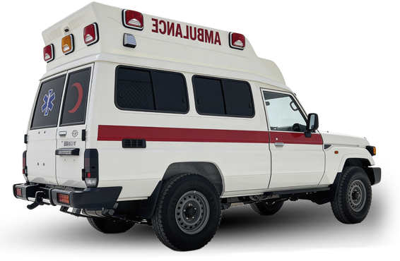 سيارة إسعاف ميدانية مصممة للبيئات القاسية، مبنية على تويوتا لاند كروزر، وتوفر قدرة تنقل موثوقة في المناطق النائية والطرق الوعرة.