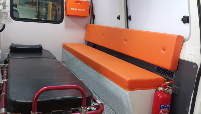 عزل حراري عالي الأداء باستخدام حواجز عاكسة للحرارة لحماية المقصورة الداخلية للإسعاف من درجات الحرارة المرتفعة والرطوبة العالية وتسربات الرطوبة.