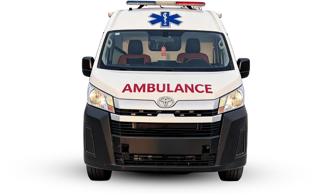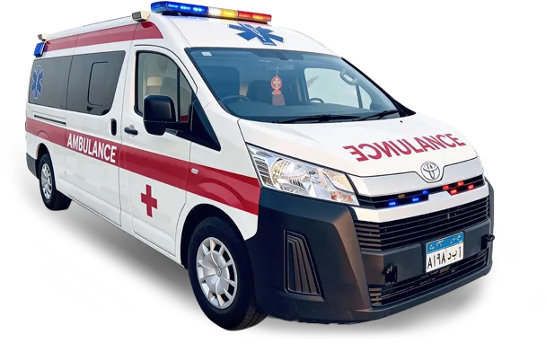 سيارة إسعاف مدمجة ومتينة مبنية على تويوتا هايس ، مصممة لأداء موثوق في المناخات الصعبة والعمليات الطبية الطارئة.